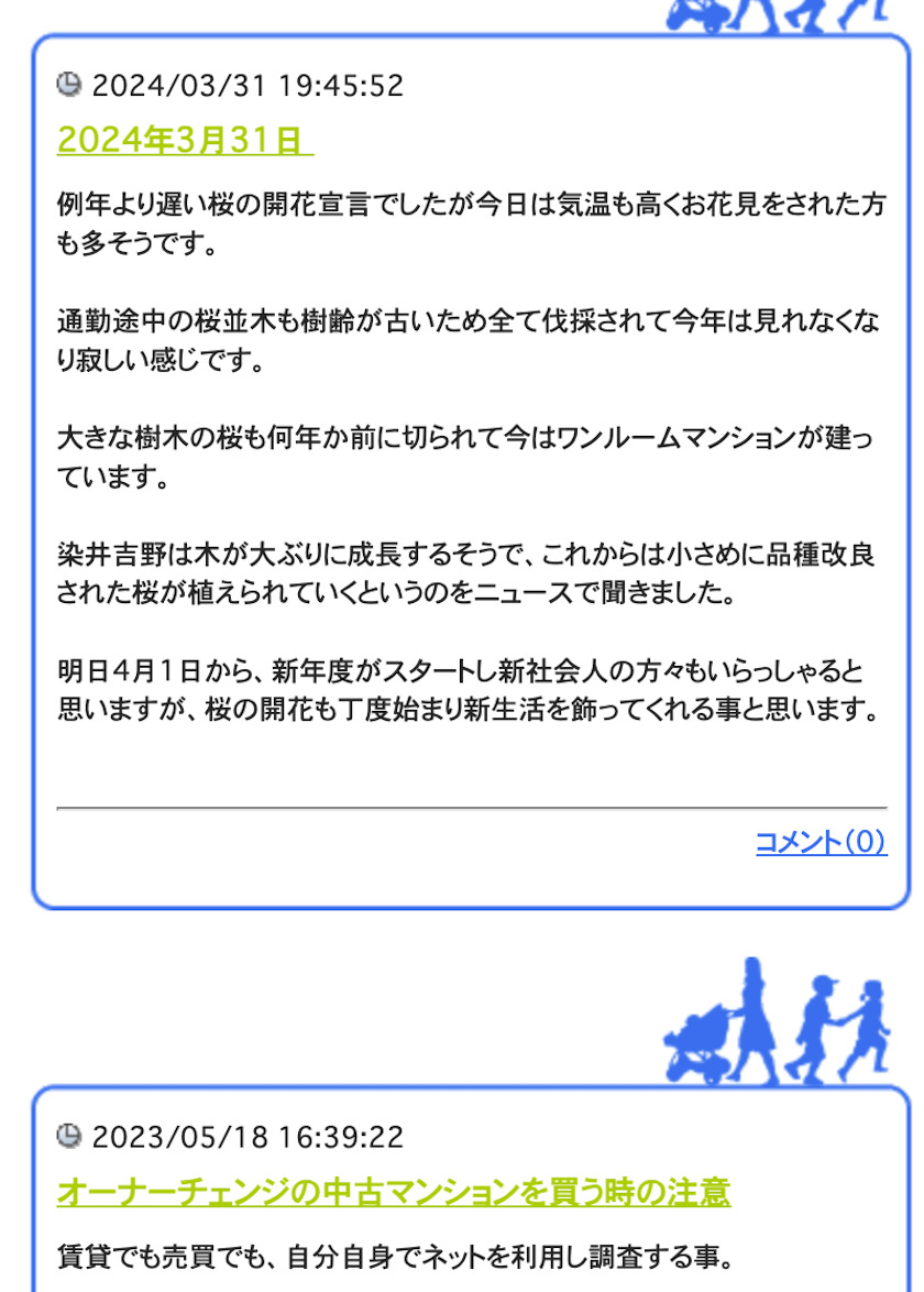 また、内容も物件紹介や不動産ノウハウといった実務的な情報ではなく、社内の出来事や雑記的な投稿が中心となっているため、投資家にとってはあまり参考にならない印象を受けます。