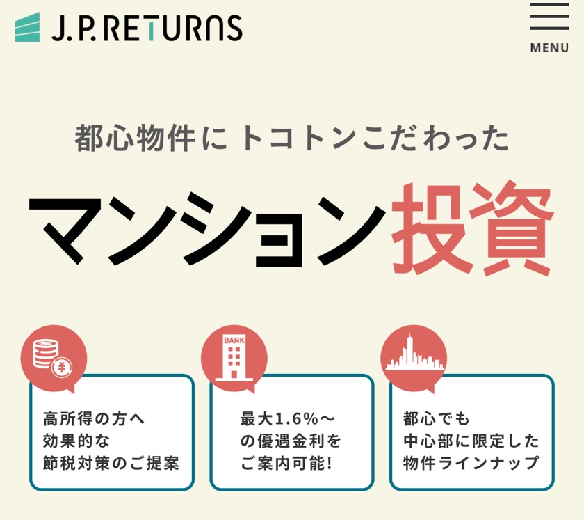 J.P.リターンズは、都心部の中古ワンルームマンションを中心に扱っています。