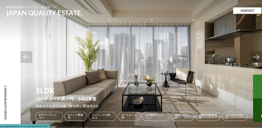 株式会社日本クオリティーエステートは、東京都23区内の中古マンションをメインに取り扱っている不動産会社です。創業から10年以上の業歴があり、物件の選定においても“クオリティ”を重視した姿勢を打ち出しているようです。