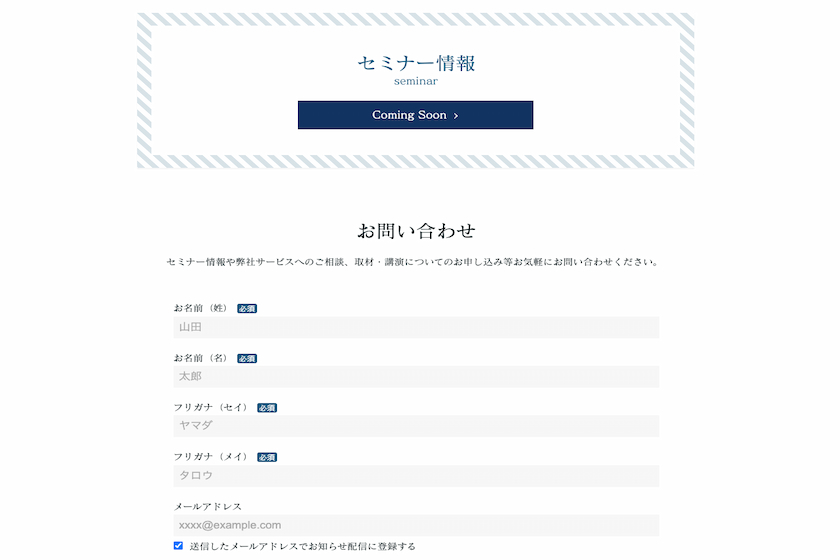 同社の公式サイトを見る限り、セミナーの参加方法は記載されていません。